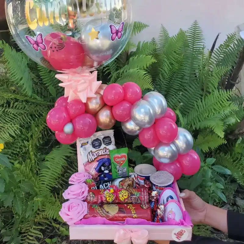 Globo burbuja personalizado,confituras y decoración con rosas🥰