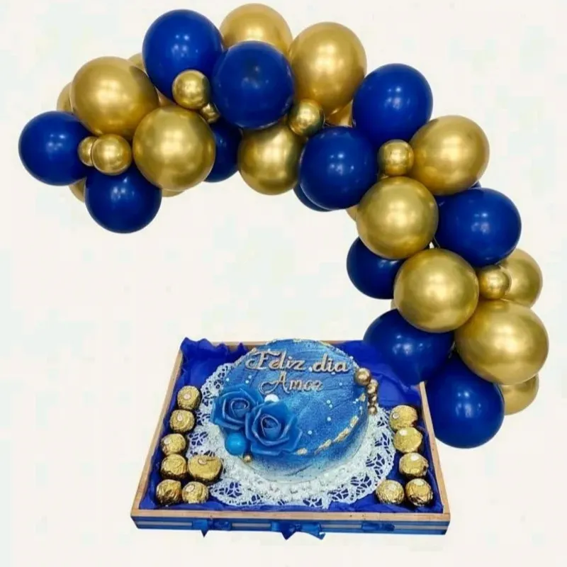 Pastel 3 leches cubierto merengue Bombones ferrero Taza personalizada Globos