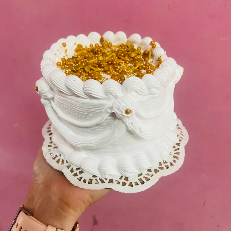 Mini panetela de 10 cm , rellena de mouss, cubierta de merengue