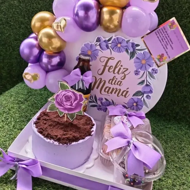 Incluye decoración cake ,6 cupcakes, confitura y ramo de 7 rosas eternas