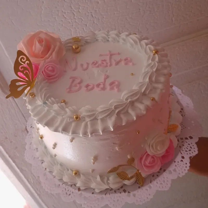 Cake humeda en almibar con relleno a escoger de cremas de coco mani guayaba chocolate fresa (es hecha a base de mantequilla) o nutella. Incluye decoración sencilla como perlas una mariposa y un topper de feliz cumpleaños esta decoración es opcional