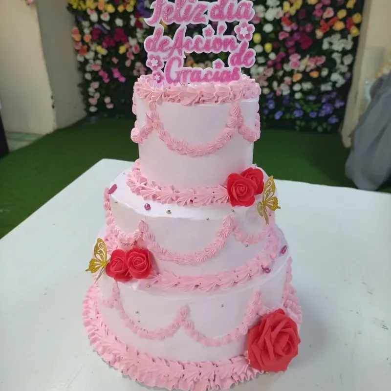 Cake humeda en almibar con relleno a escoger de cremas de coco mani guayaba chocolate fresa (es hecha a base de mantequilla) o nutella. Incluye decoración sencilla como perlas una mariposa y un topper de feliz cumpleaños esta decoración es opcional