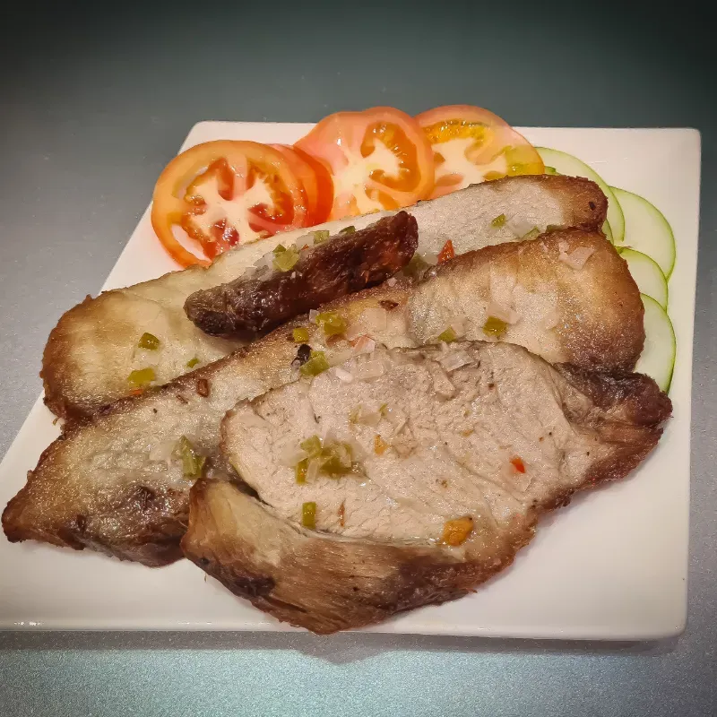 Disfruta de un festín de sabor con nuestras Lonjas de Cerdo Asado. Estas suculentas lonjas de cerdo han sido asadas a la perfección para lograr una textura tierna y jugosa, con una capa exterior crujiente que añade un delicioso contraste. Marinadas con una mezcla especial de hierbas y especias, cada bocado ofrece una explosión de sabor que deleitará tus sentidos. Servidas con una guarnición de vegetales asados y una salsa de reducción de vino tinto, estas lonjas de cerdo asado son perfectas para una comida memorable y satisfactoria. ¡Prepárate para una experiencia culinaria que te dejará deseando más!