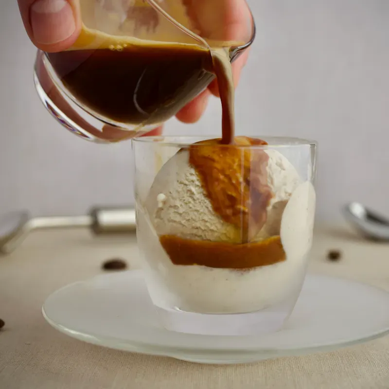 Consiste en una bola de helado cubierto con expreso