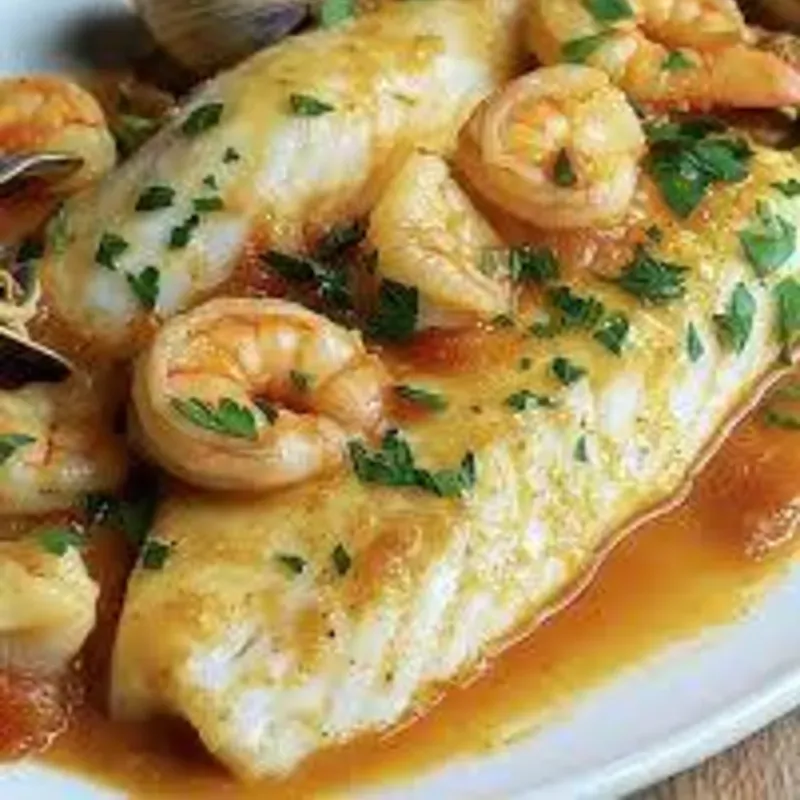 Para crear este plato, seleccionamos el pescado más firme y lo complementamos con una salsa emulsionada de mariscos y especias finas. El resultado es un equilibrio perfecto entre suavidad y carácter marino