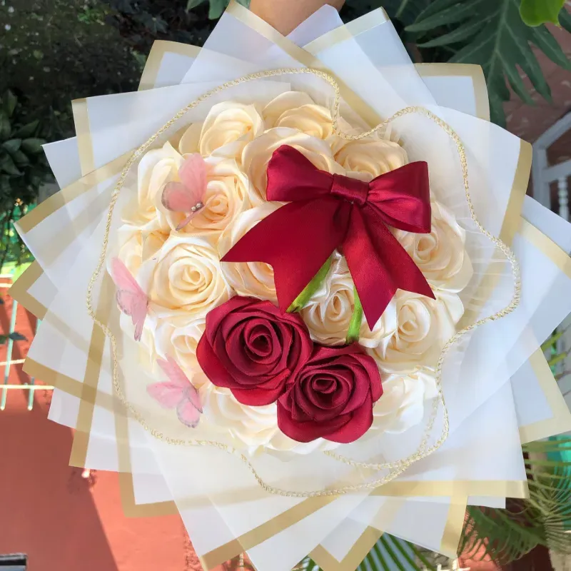 Ramo de 21 rosas eternas con temática de cerezas
