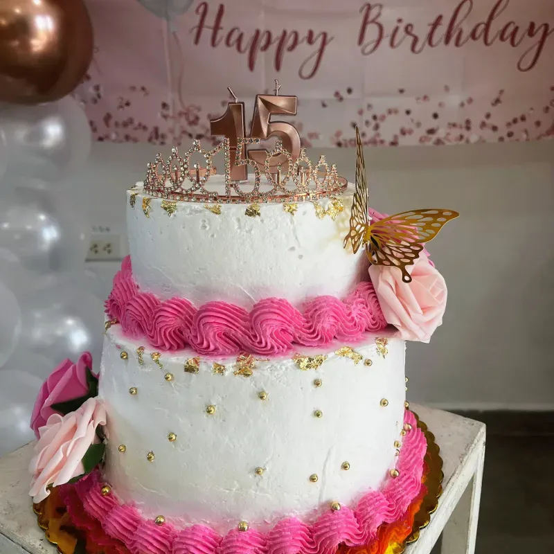 Pastel de 15 con decoración de rosas