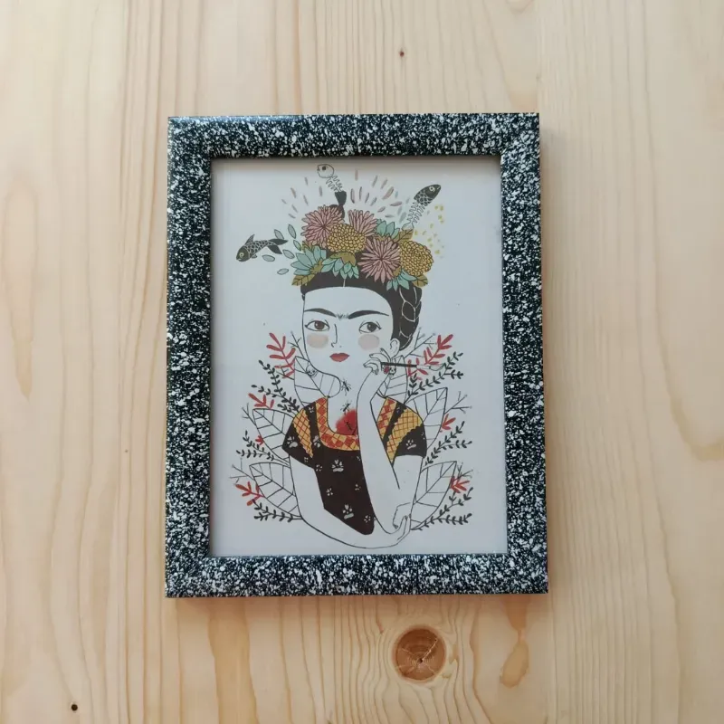Cuadrito artesanal de marco de madera, con cristal para proteger la imagen y cancamos para poder colgar