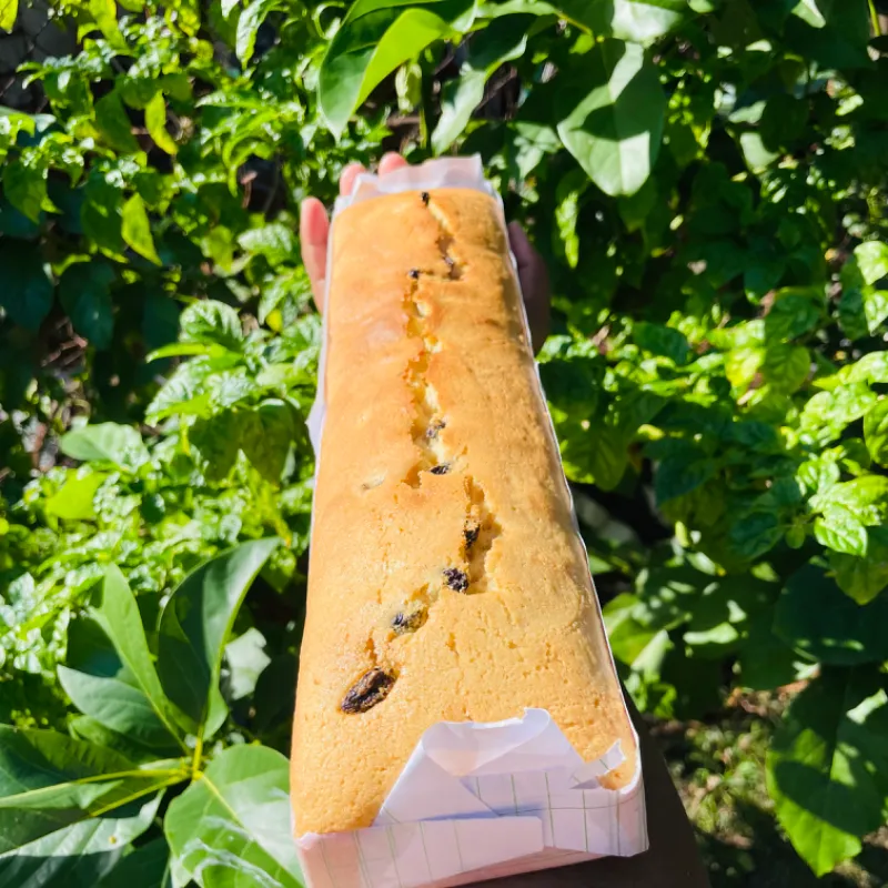 Gaceñiga de 35 cm de largo por 9 cm de ancho, con agregos (frutos secos, chispas de chocolate)