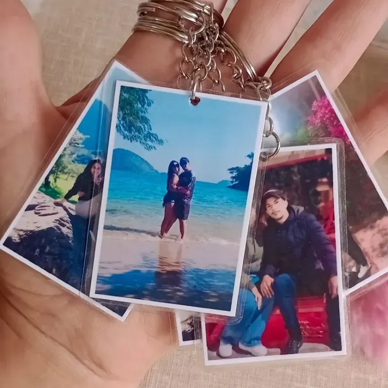Llavero plasticado con dos fotos ,postalea o algo de su preferencia