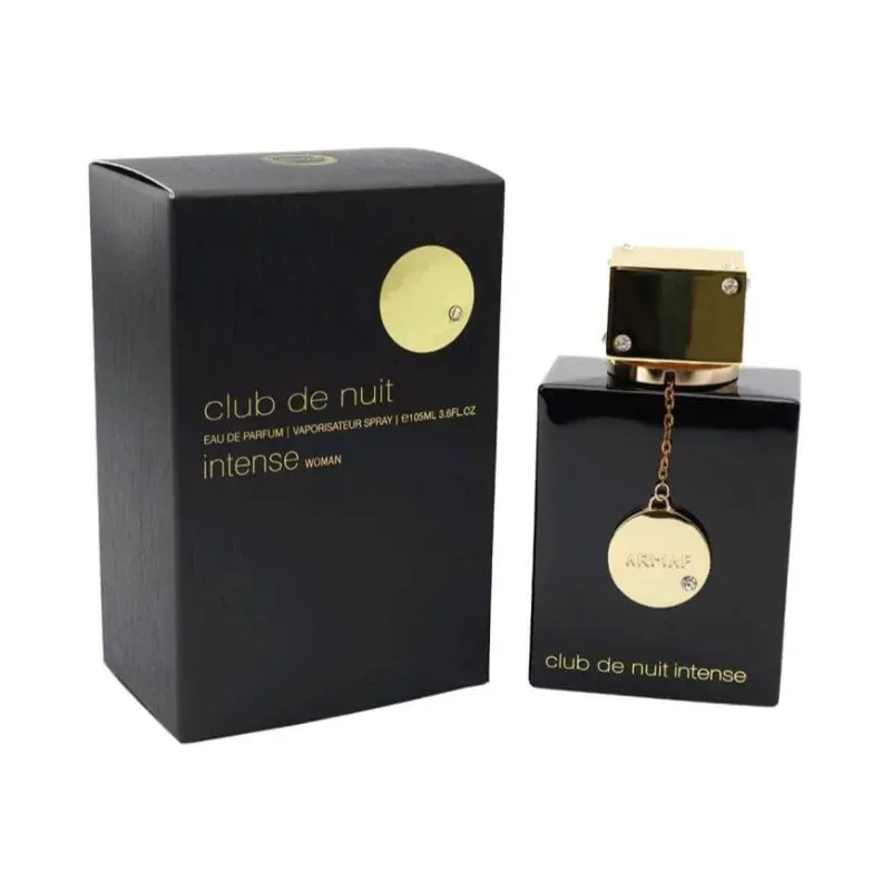 Club de Nuit Intense de Armaf es una fragancia de la familia olfativa Chipre Floral para Mujeres. Las Notas de Salida son rosa, azafrán y geranio; las Notas de Corazón son nuez moscada, pimienta, violeta y alcaravea; las Notas de Fondo son pachulí, madera de oud, vainilla y ámbar.