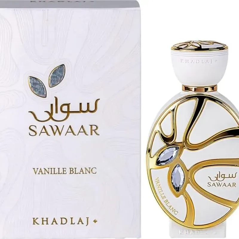 Sawaar Vanille Blanc de Khadlaj Perfumes es una fragancia de la familia olfativa Oriental Vainilla para Hombres y Mujeres. Esta fragrancia es nueva. Sawaar Vanille Blanc se lanzó en 2025. Las Notas de Salida son vainilla, Azúcar glas y manzana; las Notas de Corazón son madera de cachemira, ámbar y flores blancas; las Notas de Fondo son vainilla, sándalo y benjuí.