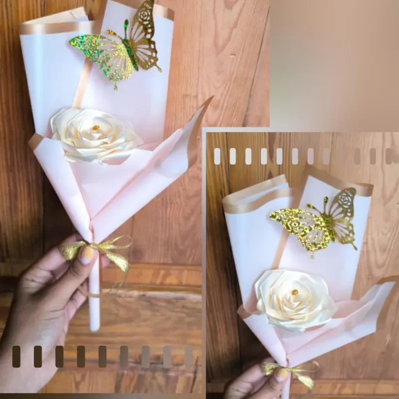 Una rosa eterna hecha con cinta de satin y papel coreano