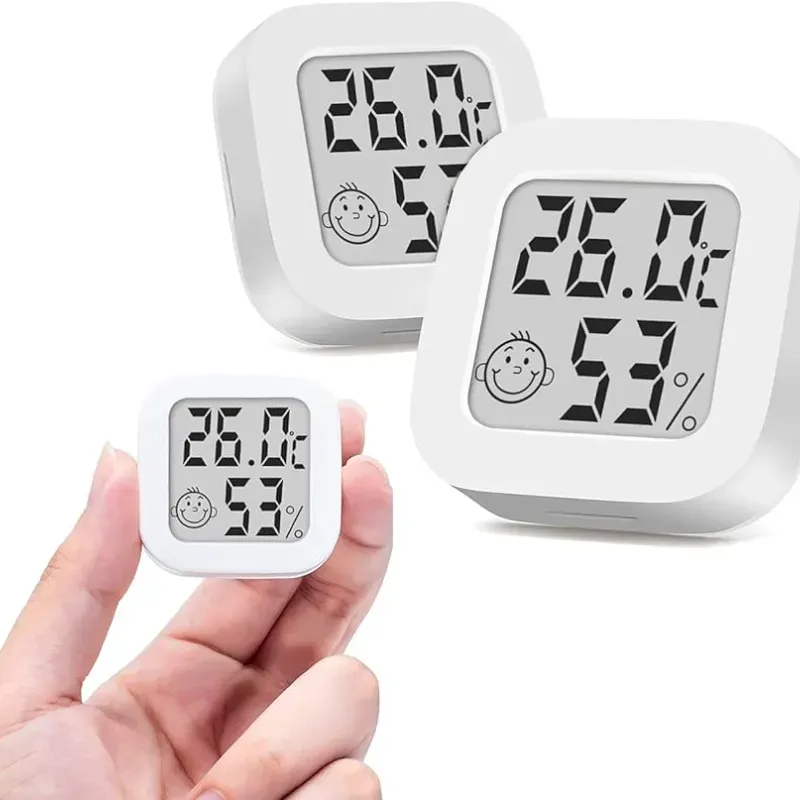 Medidor de temperatura y humedad en tu espacio de trabajo. Tamaño pequeño. Se puede pegar a la pared.