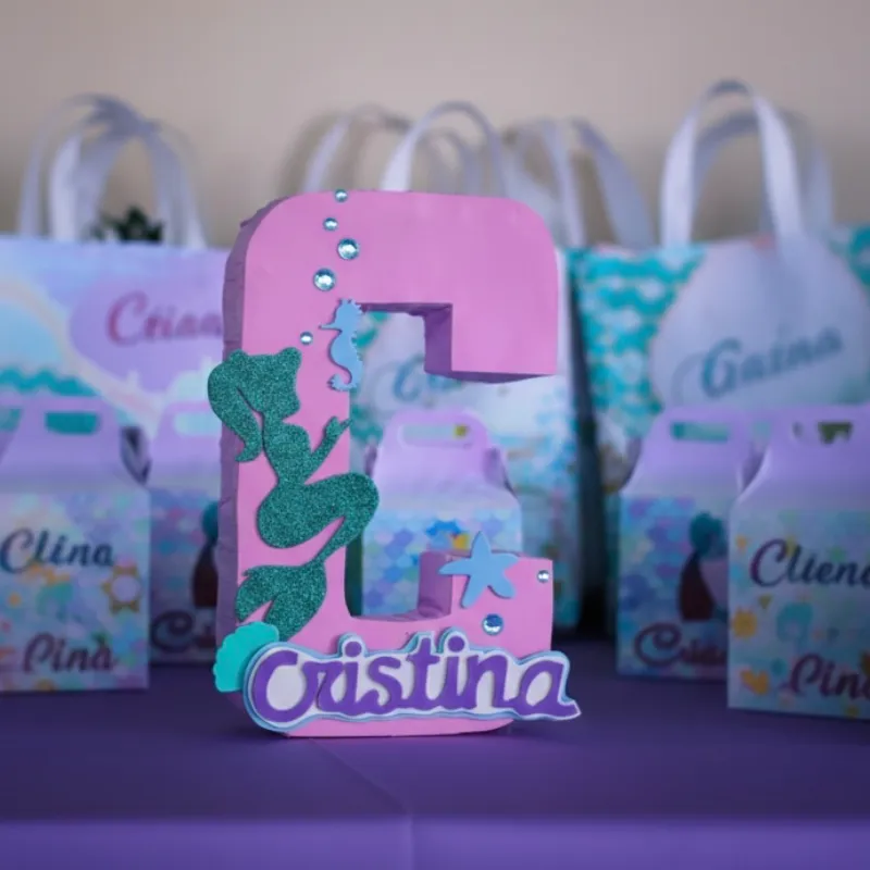 Letra inicial en formato 3D con el nombre en 2D ideal para adornar tus fiestas, hacer fotos, regalos...