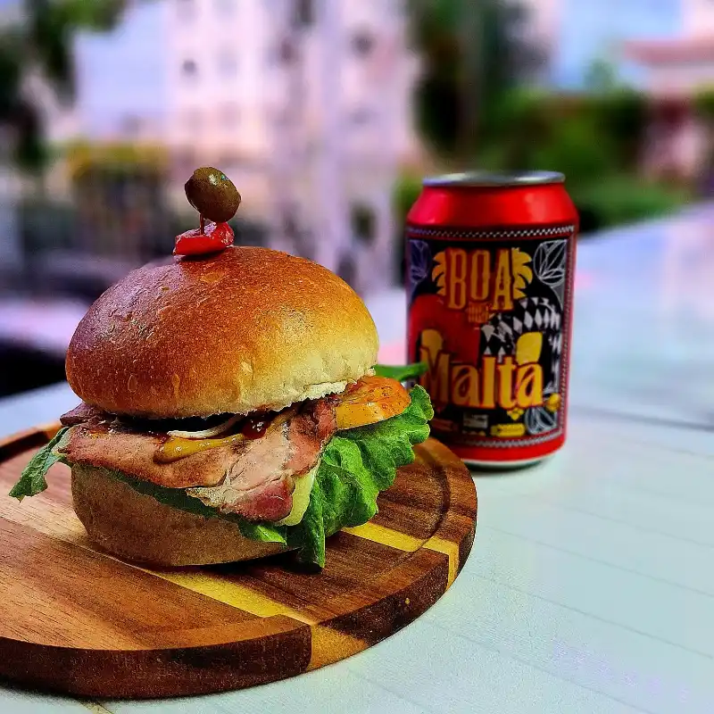 Deliciosa Hamburguesa. Acompañada de Jamón Pierna y Queso Gouda. Vegetales y Variadas Salsas. Ketchup, Mostaza y Mayonesa.