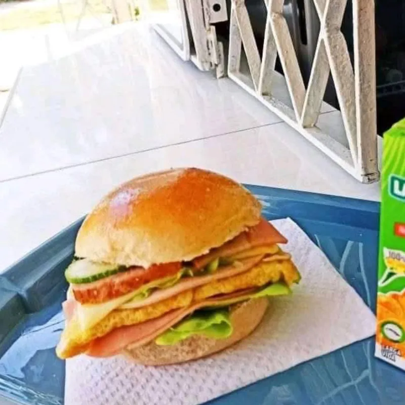 Jamón pierna, Queso Gouda, Tortilla y Vegetales. Todo acompañado de deliciosas salsas. Mayonesa Ketchup y Mostaza