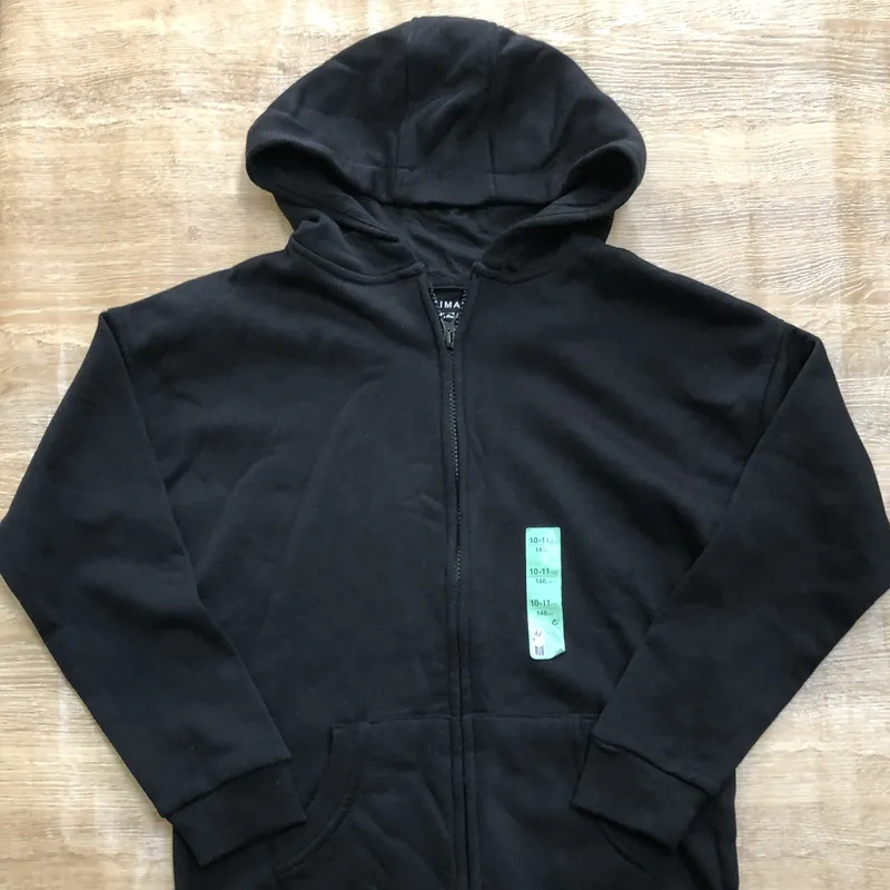 Abrigo negro de ziper con capucha
