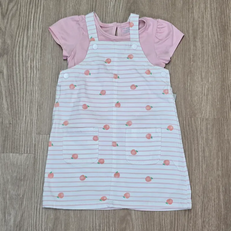 Conjunto de Overol con melocotones y pulover color rosado