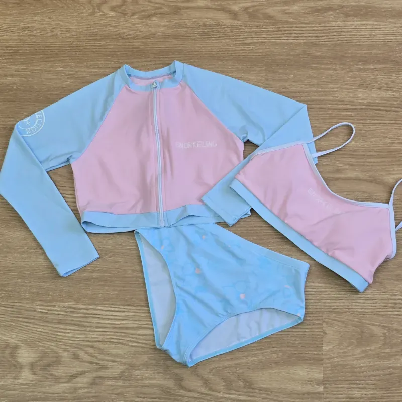 Set 3 piezas de traje de baño rosa y azul con mangas largas