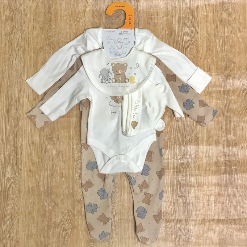 Set de 3 bodys, gorro y babero con animalitos
