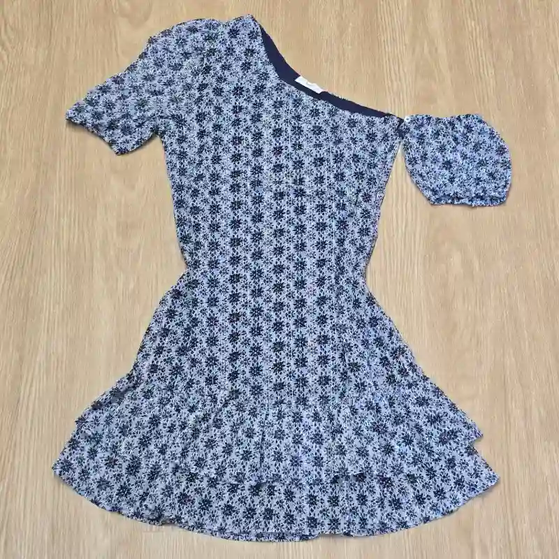 Vestido azul con flores y vuelos elegante