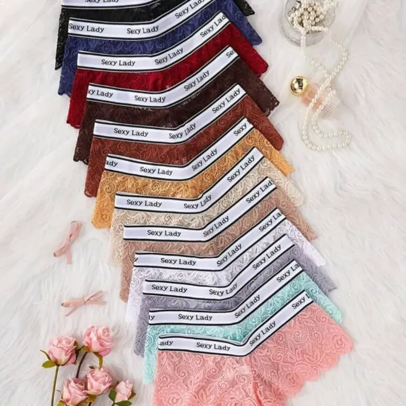 Bragas sexys con banda de letras y ribete de encaje para mujer Talla M Precio 2.5 USD cada uno o al cambio