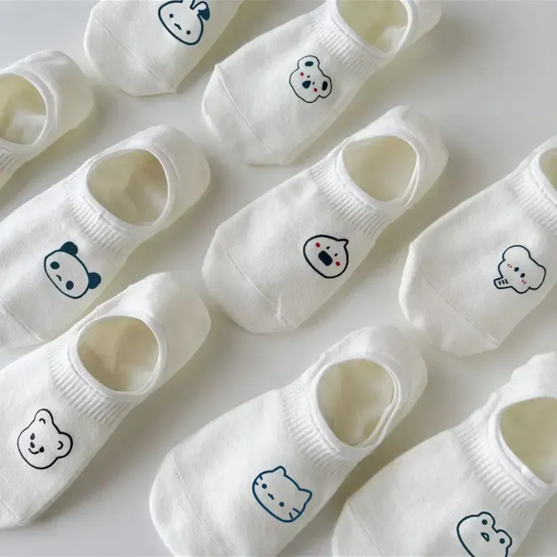 Calcetas Invisibles con Estampado de Dibujos Animados - Suaves, Ligeras, Transpirables, Calcetas de Tobillo Bajo para Mujeres - Tejido de Poliéster, Medias y Calcetería Cómodas para Uso Diario. 1 usd