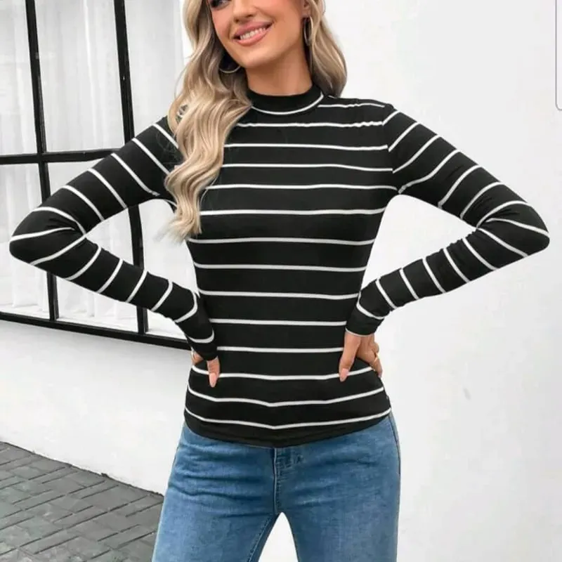 Camiseta de rayas de cuello alto Talla S y M Precio 11 USD o al cambio