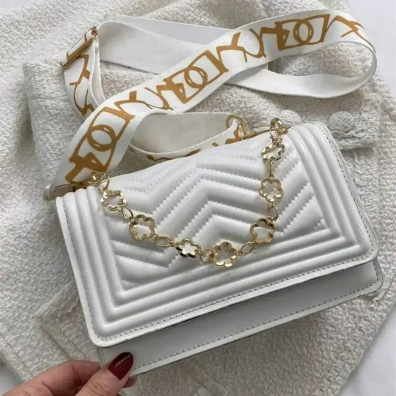 Cartera Cruzada De Hilo Blanco Con Decoración De Cadena De Moda, Perfecta Para El Uso Diario De Mujeres Blanco/Unitalla