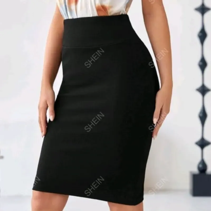 Falda de lápiz unicolor de cintura ancha. Negro Talla M