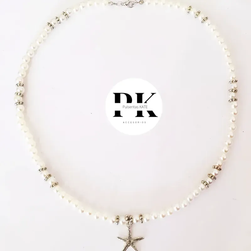 COLLAR DE PERLAS DE 6MM CON DIJE DE ESTRELLA DE MAR Y SEPARADORES.