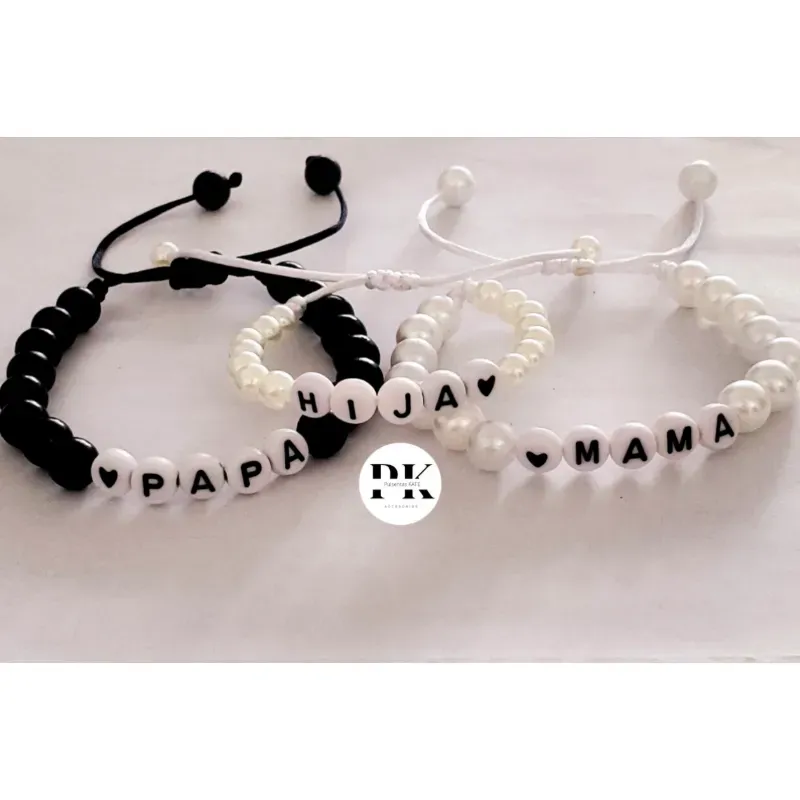 JUEGO DE PULSERAS DE PERLAS HIJA- MAMÁ- PAPÁ.