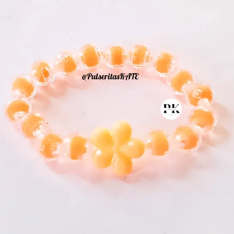PULSERA ANARANJADA CON FLOR PARA NIÑA
