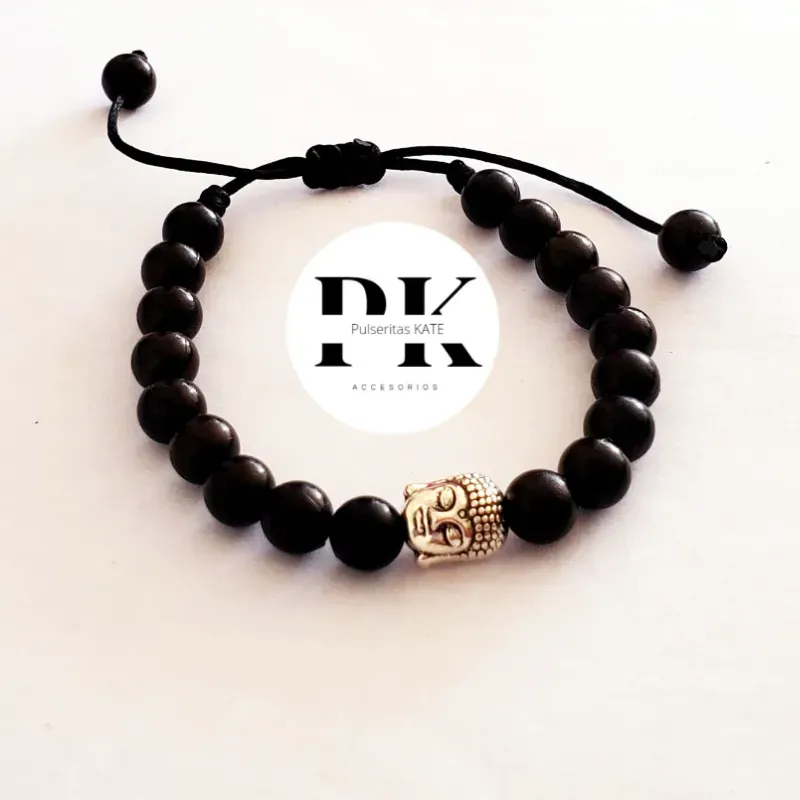 PULSERA DE PERLAS NEGRAS 8MM CON CONECTOR DE BUDA.