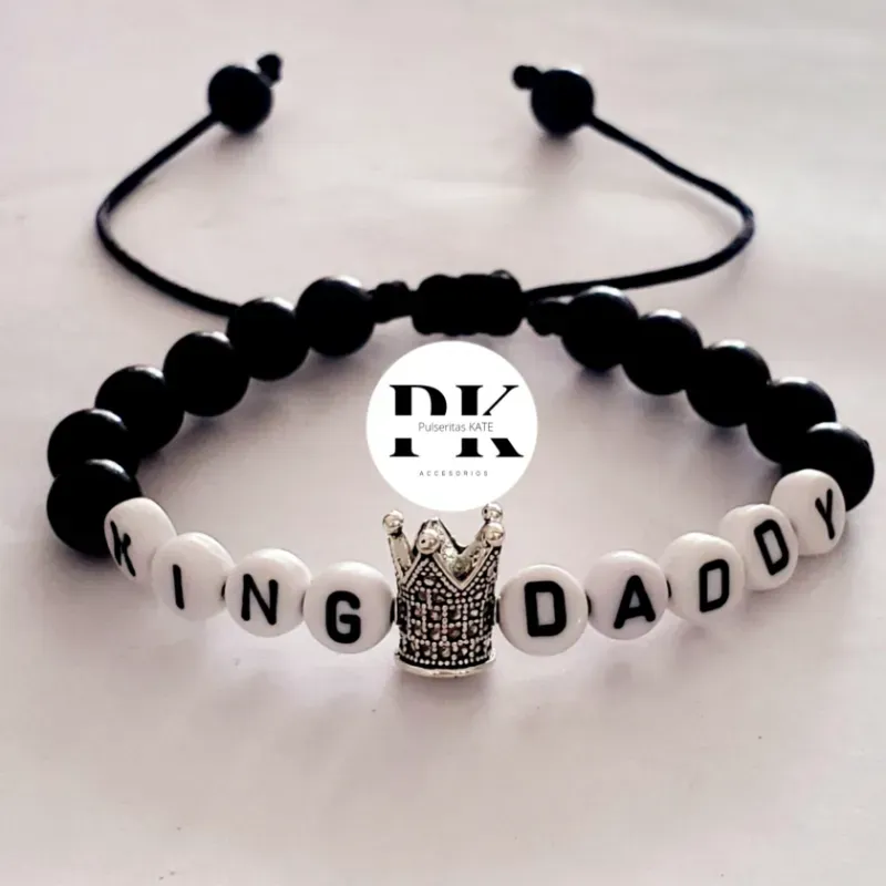 PULSERA DE PERLAS NEGRAS Y CONECTOR DE CORONA PARA PAPÁ