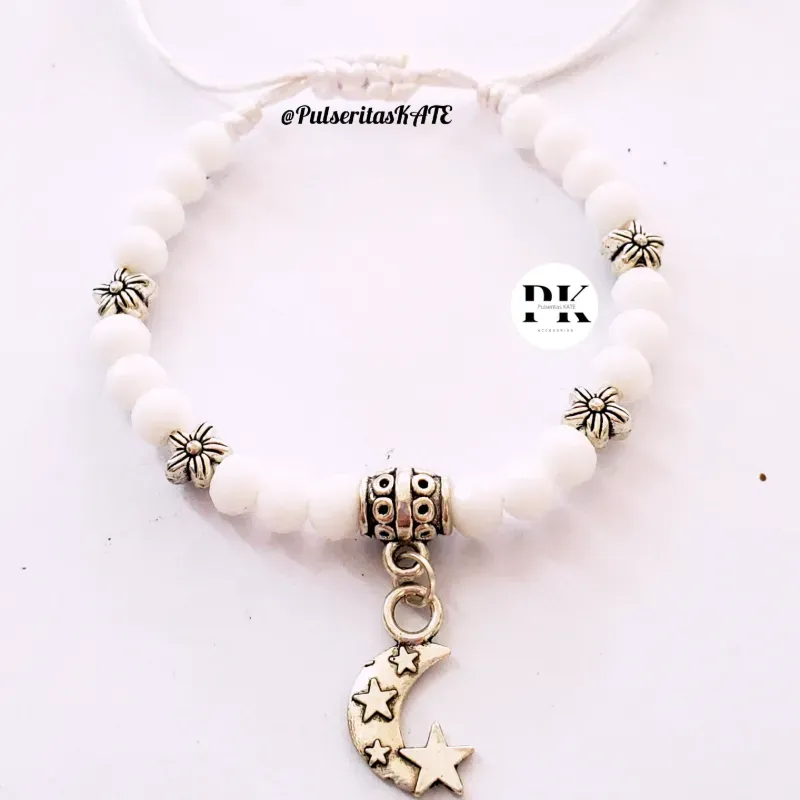 PULSERA DE SWAROVSKI 6MM CON SEPARADORES Y DIJE DE LUNA.