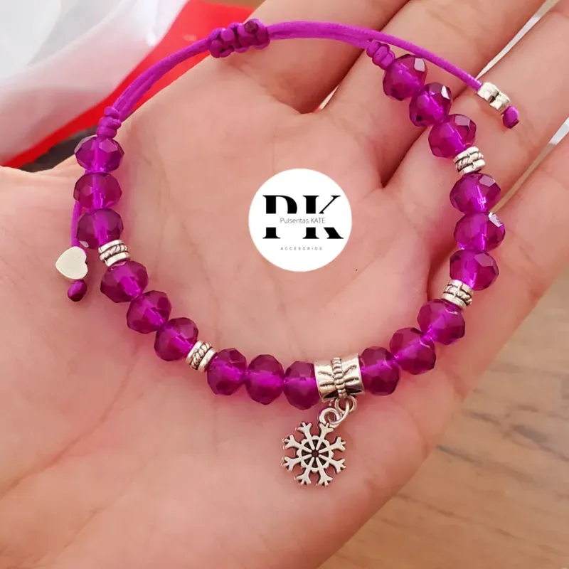 PULSERA DE SWAROVSKI 8MM MORADA CON SEPARADORES Y DIJE DE COPO DE NIEVE
