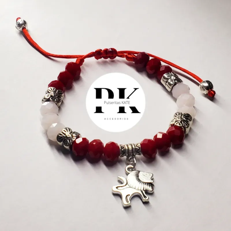 PULSERA DE SWAROVSKI ROJO Y BLANCO CON DIJE DE LEÓN
