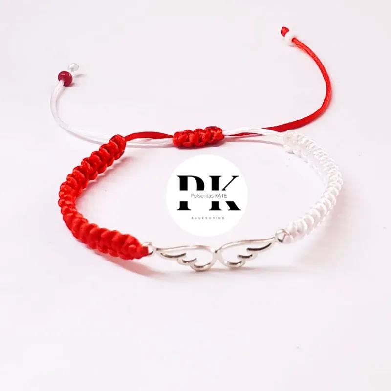 PULSERA BLANCA Y ROJA TEJIDA CON CONECTOR DE ALAS.