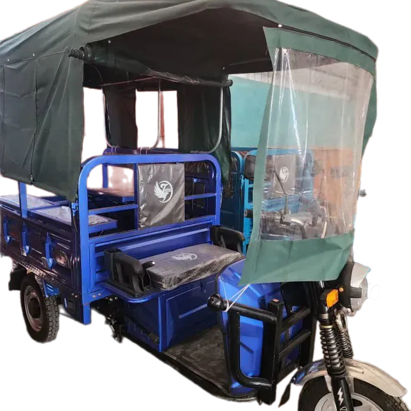 Diseño funcional con opción de extensor. Equipado con batería de gel 72V 58Ah y motor de 1500W, ofrece capacidad para carga y pasajeros con asientos plegables. Incluye techo original, porta celular y puerto de carga USB.