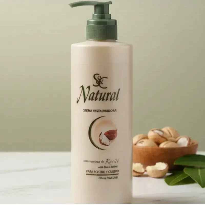 El producto en la imagen es la crema restauradora natural S&C con manteca de karité.