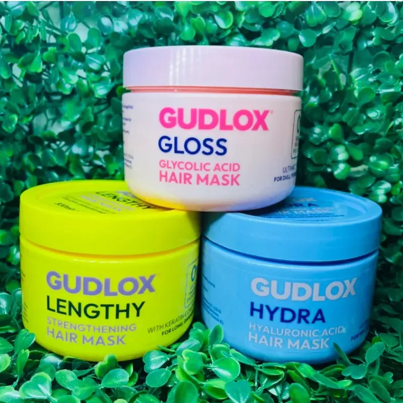 ✨• Gudlox Lengthy (Amarilla): Es una mascarilla de fortalecimiento. Está formulada con queratina y aceite de ricino, ideal para cabellos largos o dañados que necesitan mayor resistencia contra la rotura.