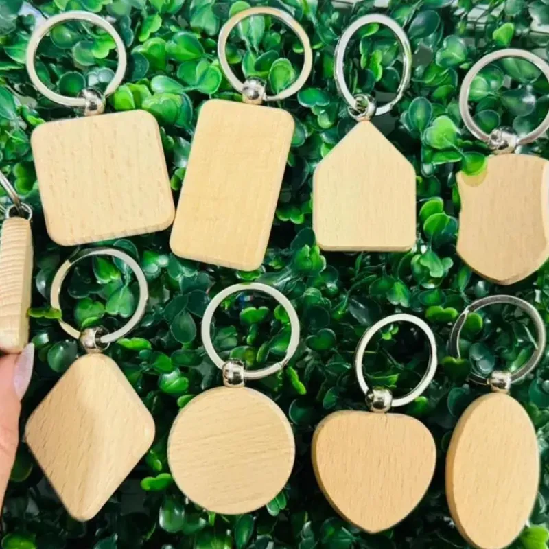 Llaveros tallados en madera de diversos modelos .Se le coloca el diseño que desee por ambas caras .