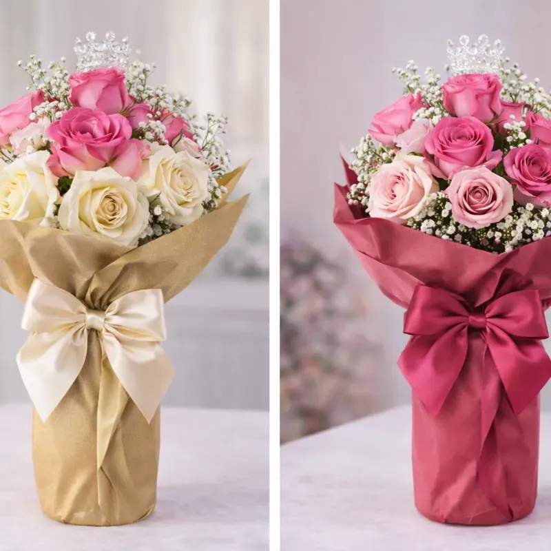 Elegante botella de vino tinto, vino blanco, vino rosé o sidra (según disponibilidad), presentada con envoltura decorativa y lazo satinado. Incluye flores naturales o flores eternas (según disponibilidad). Ideal para regalar en cumpleaños, aniversarios y ocasiones especiales.