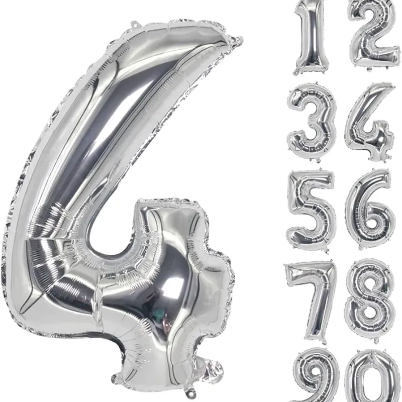 Globo de número plateado metalizado
