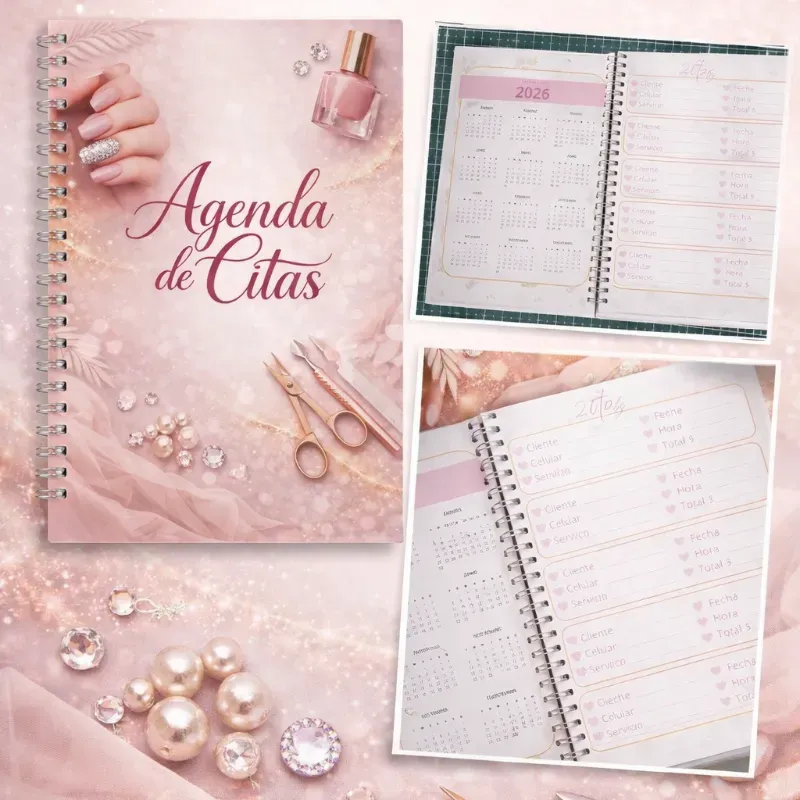 Agenda para apuntar los turnos de tu negocio con tapa dura, se puede personalizar el contenido y la portada, pero el precio puede variar en algunos casos