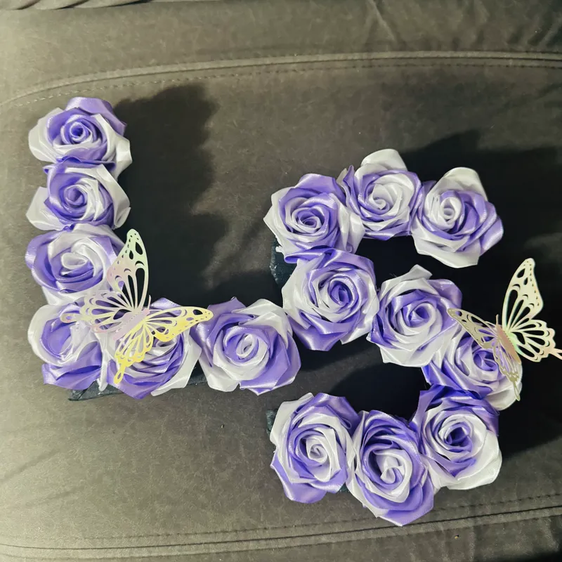 Letras confeccionadas con rosas eternas