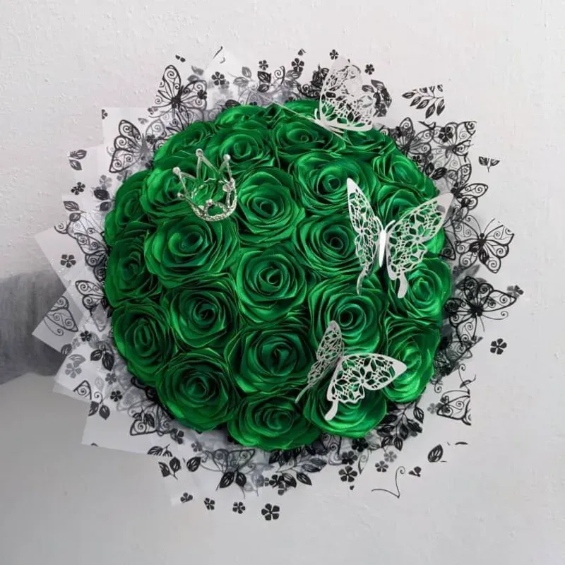 Ramo de 25 Rosas con Mini Corona y 3 Mariposas