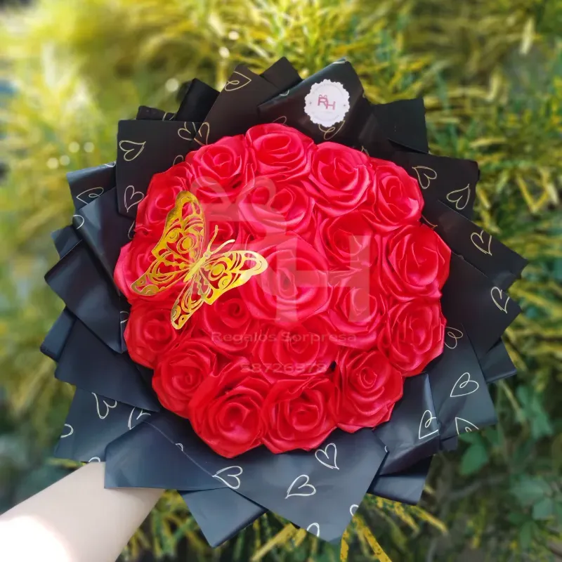 Color que desee y envoltura a escoger Agregados: 1 mariposa 🦋 metálica (gratis), más de una 70 cup c/u Corona 👑 500 cup Corona pequeña 👑 300 cup Banda con dedicatoria 🎀 300 cup Tarjeta dedicatoria 📜 50 cup Tiara 👸 1100 cup Luces 400 cup
